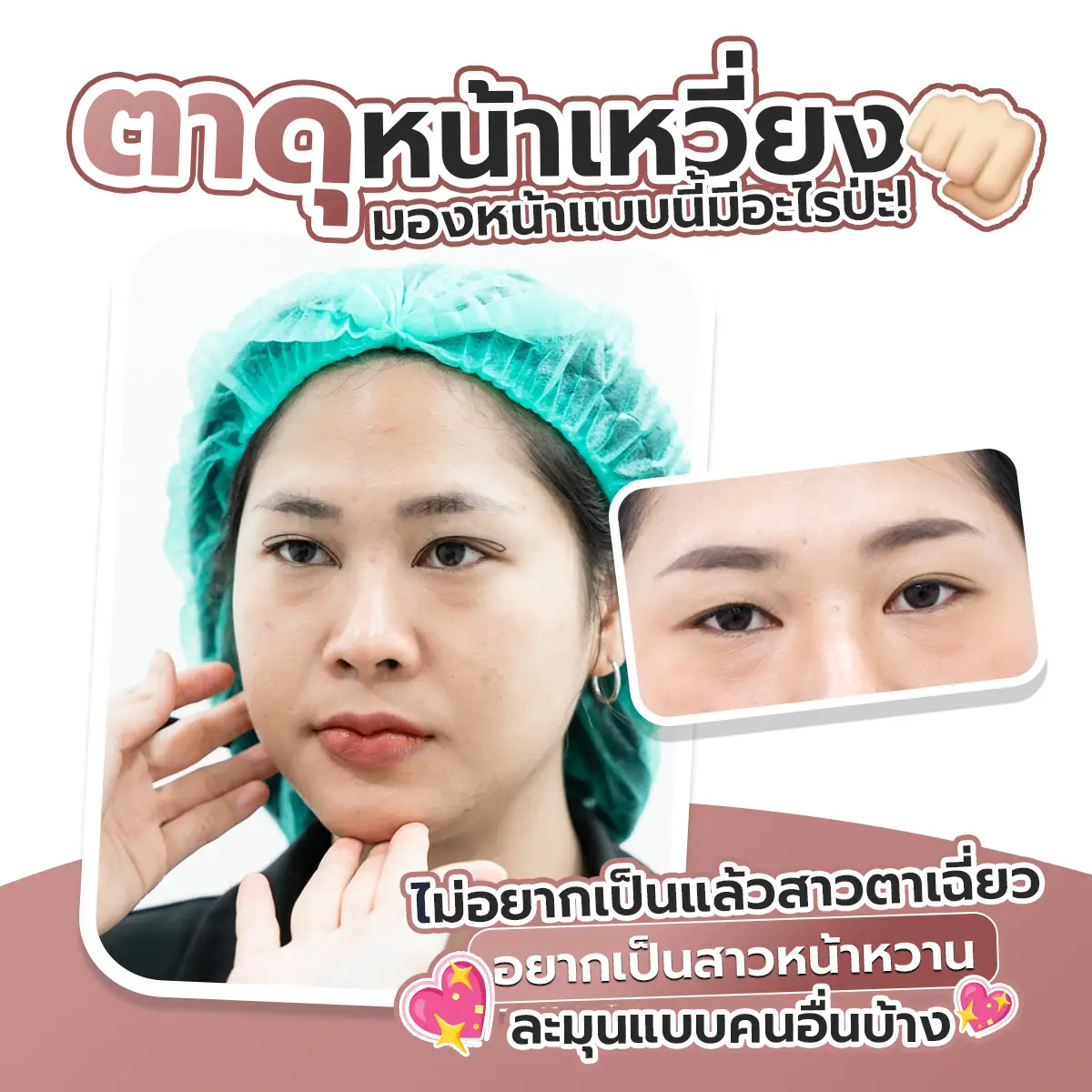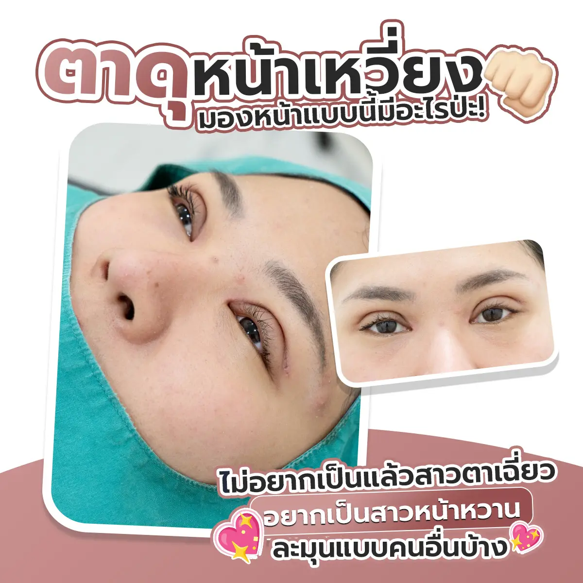 แล้วมันมีประเด็นเรื่องการที่คนอื่นคิดว่าเปรี้ยวมองหน้าเขาแบบหาเรื่องเข้ามา บ่อยมาก เลยมาคิดว่าเป็นเพราะอะไรทำไมคนถึงคิดแบบนั้นกันเยอะ จนได้ข้อสรุปว่า เป็นเพราะตาของเปรี้ยวเอง มันดูดุ ดูหาเรื่อง ทำให้หน้าดูเฉี่ยวมาก เลยคิดว่าต้องมา แก้ให้ใบหน้าหวานดูขึ้นด้วยการศัลยกรรมตาสองชั้น เลยตัดสินมาทำตาสองชั้นที่ At Medical Clinic แบบไม่คิดอะไรมาก เพราะคุณแม่ก็มาทำตาสองชั้นที่นี่ เหมือนกัน แล้วตอนนี้ชั้นตาของคุณแม่คือสวยมาก เลยทำให้เปรี้ยวตัดสินใจไม่ยาก เลยค่ะ