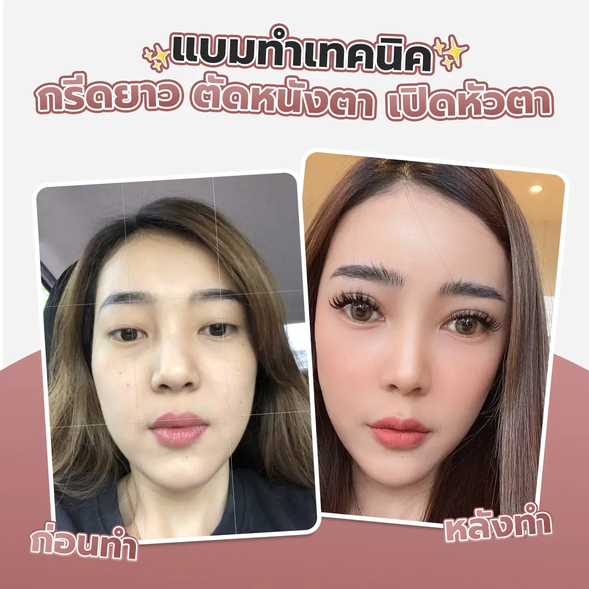 ใครจะไปคิดละคะว่าแค่ทำตาสองชั้นหน้าก็เปลี่ยน แบมพิสูจน์มาแล้วค่ะจากอาหมวยตาชั้นเดียวเปลี่ยนเป็นสาวหวานตาสองชั้นได้ด้วยการทำศัลยกรรมตาสองชั้นที่ At Medical Clinic เพราะก่อนหน้านี้แบมเป็นคนตาชั้นเดียว ที่อยากเป็นสาวหวานตาสองชั้นมาตลอด หาข้อมูลเยอะมากทั้งโรงพยาบาลและคลินิกจนมาเจอที่ At Medical Clinic พอเข้ามาดูรีวิวในเพจ แบมก็ตัดสินใจเข้ามาปรึกษาที่คลินิกเลยเพราะว่ารีวิวส่วนใหญ่เป็นตาสองชั้นแบบที่แบมอยากได้ คือชั้นตาที่ทำมาแล้วช่วยให้หน้าดูหวานขึ้น ละมุนขึ้นค่ะ
