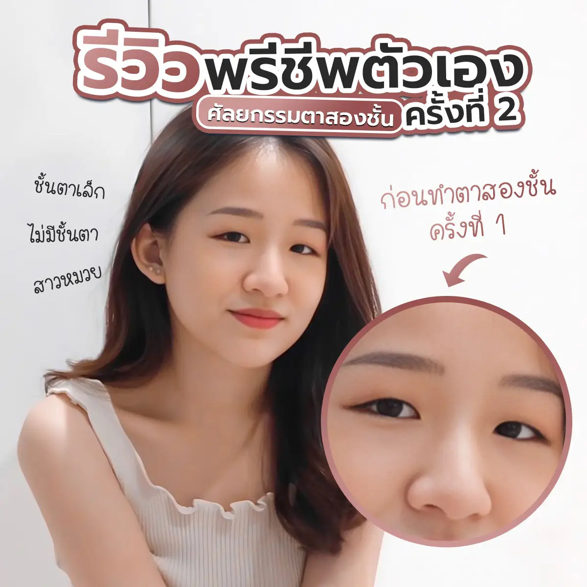 สวัสดีค่ะเพื่อนๆทุกคน เราชื่อเจินน้า เราจะมาเล่าประสบการณ์ทำตาสองชั้นให้ทุกๆคนฟัง เจินขอเล่าปัญหาก่อนเลยนะคะ แต่ก่อนเจินเป็นคนที่ชั้นตาเล็กมากแบบไม่มีชั้นตาเลย ทำให้หน้าเจินดูเป็นสาวหมวยไปเลยอ่าทุกๆคน เวลาแต่งตา กรีดอายไลน์เนอร์คือยากมาก